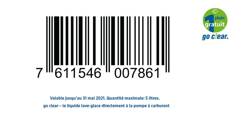 Montrez l‘image du bon à la caisse d‘une station-service participante et faites le plein de liquide lave-glace gratuitement.